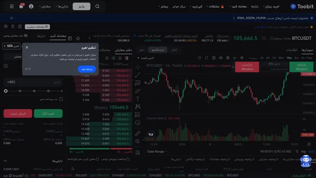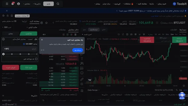 Toobit امکانات و ابزارهای حرفهای متعددی دارد که باعث میشود حتی تریدرهای پیشرفته بتوانند با دقت و سرعت بالاتر به معاملات خود بپردازند: